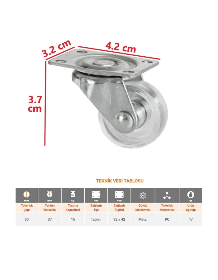 | Tekerlek Malzemesi | : | Polikarbonat |