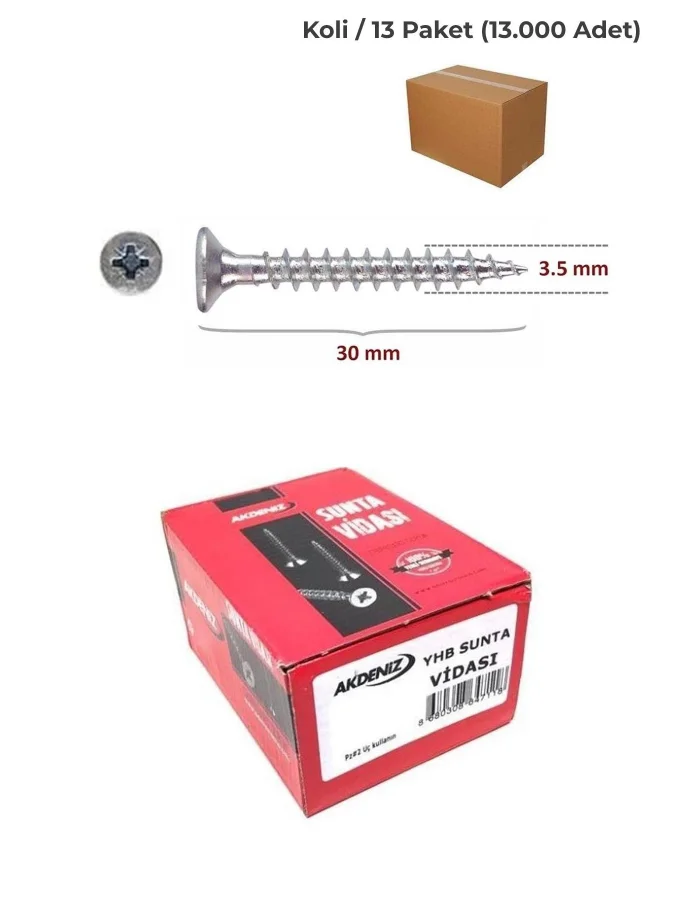 Akdeniz Sunta Vidası 3.5x30 Koli 13.000 Adet