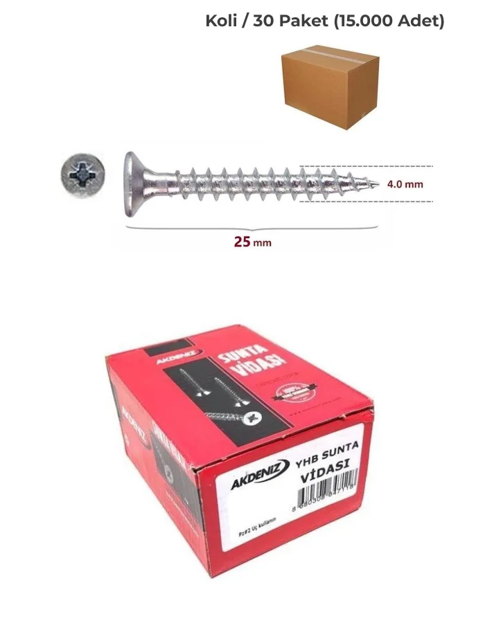 Akdeniz Sunta Vidası 4x25 Koli 15.000 Adet