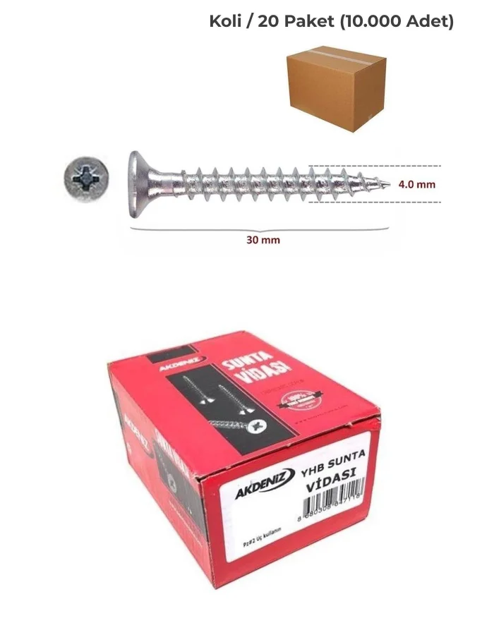 Akdeniz Sunta Vidası 4x30 Koli 10.000 Adet