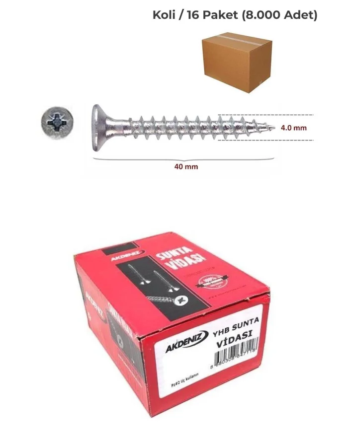 Akdeniz Sunta Vidası 4x40 Koli 8.000 Adet