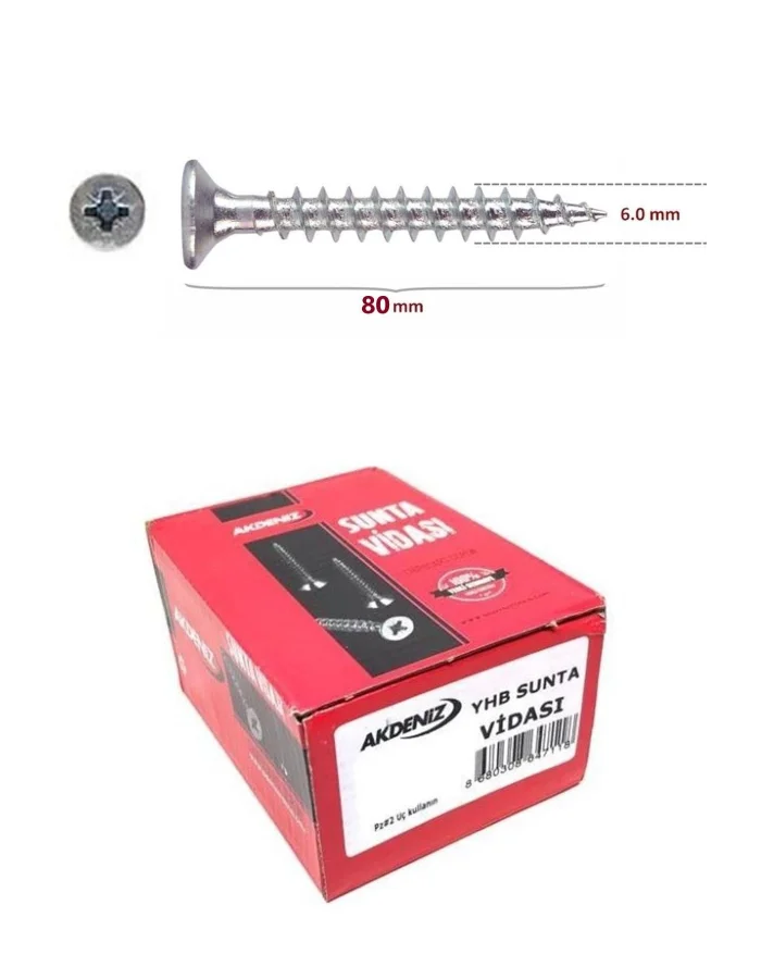 Akdeniz Sunta Vidası 6x80 Kutu 100 Adet