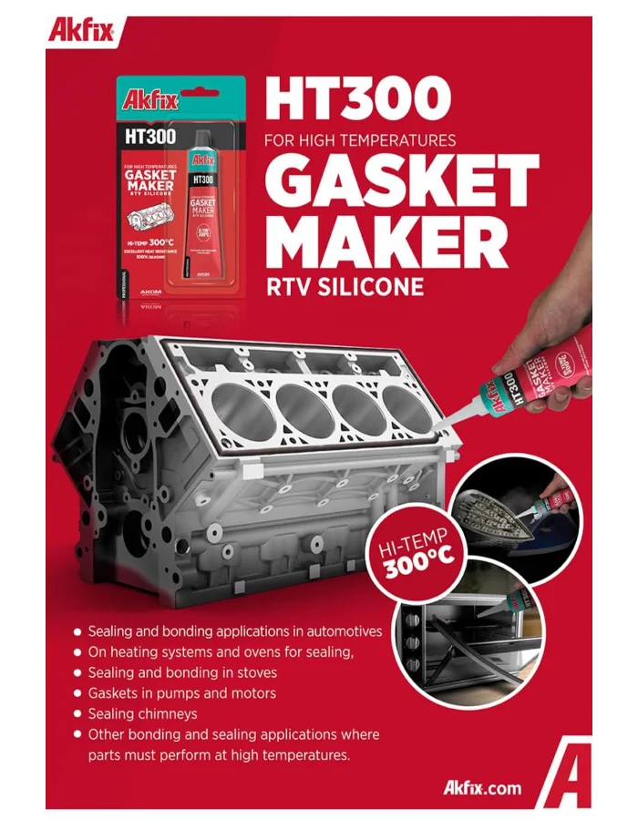 Akfix HT300 Yüksek Isı Silikonu Sıvı Conta 310 Ml Kırmızı