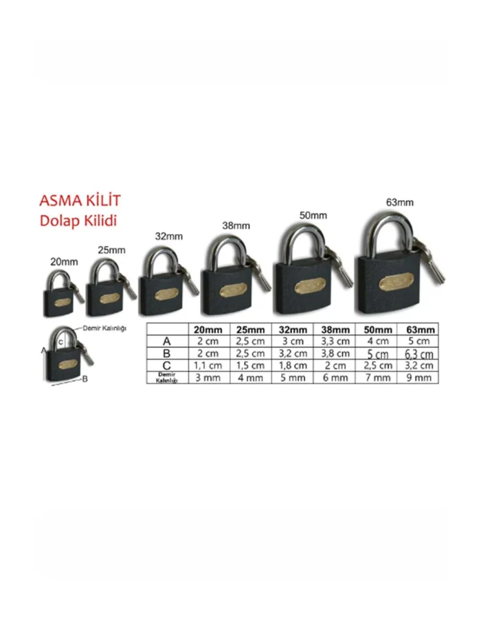 Sarı 3 Anahtarlı Asma Kilit 63 mm Uzun