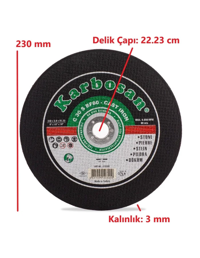 Karbosan Mermer Kesme Taşı Taşlama Spiral Kesici Disk 230x3x22.23