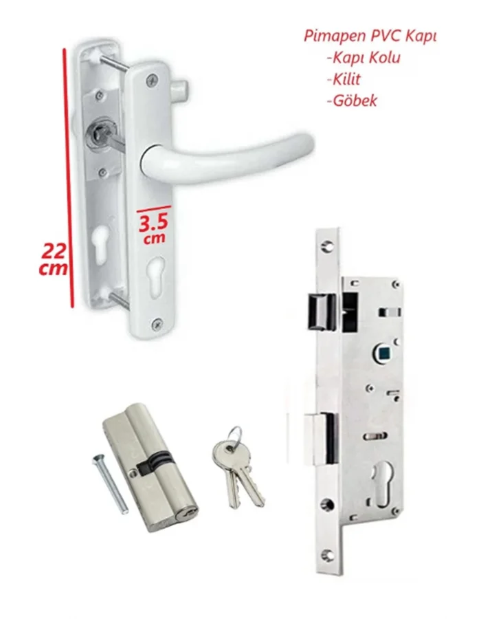 Pimapen Pvc Kapı Kolu & 35 Mm Kilit & 90 Mm Barel Kilit Göbeği Takım