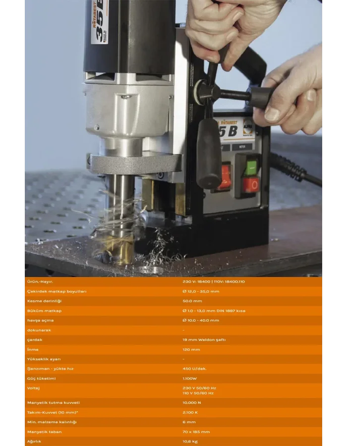 Alfra RB 35B Elektromanyetik Matkap 1100 W