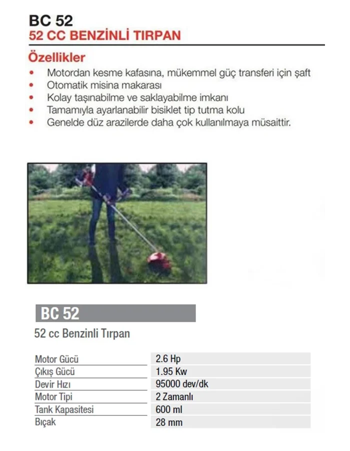 Attlas BC52 Benzinli Yan Tırpan 2.6 Hp