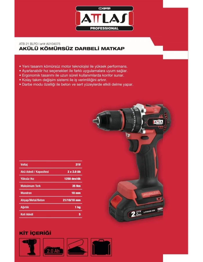 Attlas ATB 21 BLPD LI-ION 21V Akülü Kömürsüz Darbeli Matkap