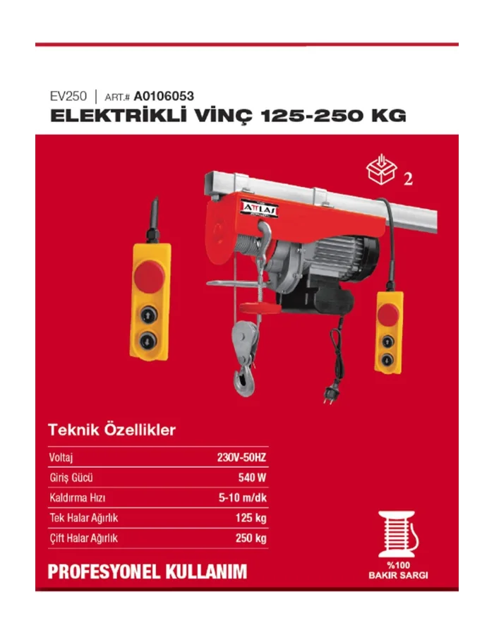 Attlas EV250 Elektrikli Caraskal Vinç 125-250 Kg