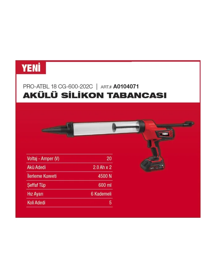 Attlas Pro Atbl 18 CG-600 202C 2 Ah Akülü Silikon Tabancası
