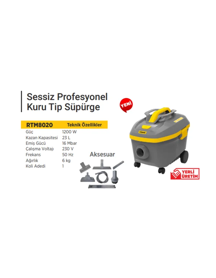 RTRMAX Sessiz Profesyonel Sanayi Tipi Kuru Süpürge RTM8020