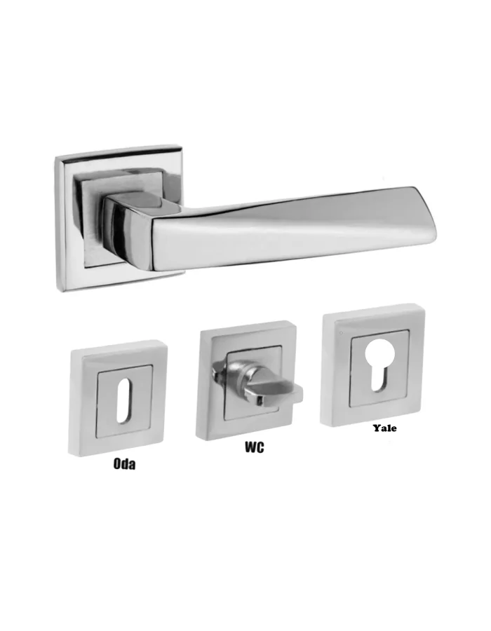 Firuze Rozetli Nikel İnox Kapı Kolu Takım