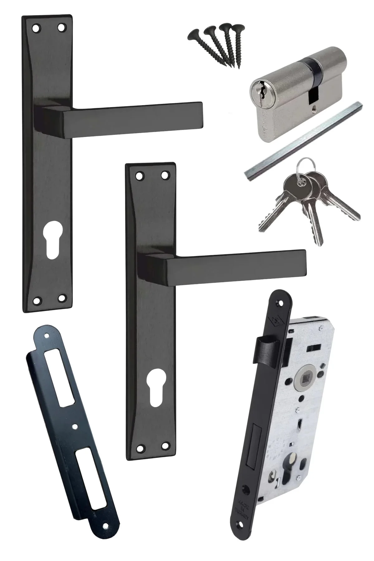 Avanti Siyah Aynalı Kapı Kolu + Siyah Silindirli Kilit 40mm Yale Takım