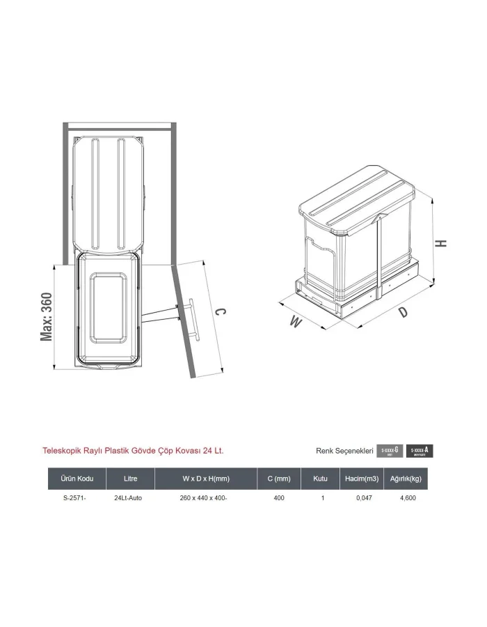 GENİŞLİK x DERİNLİK x YÜKSEKLİK | (mm) | ||