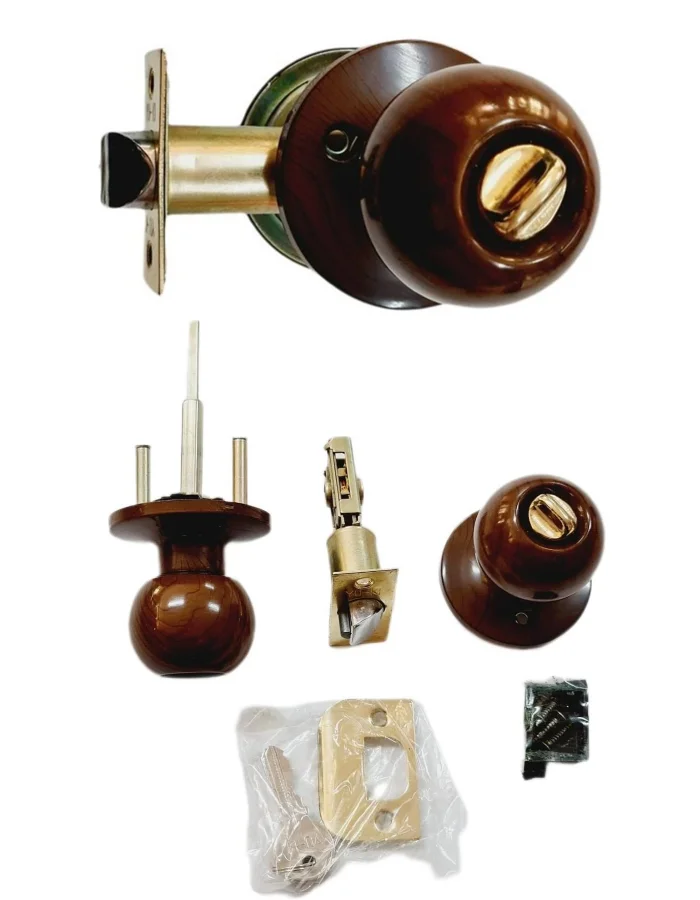 Kahverengi Topuzlu Otel Tipi Kapı Kilidi Kolu Anahtarlı Ceviz