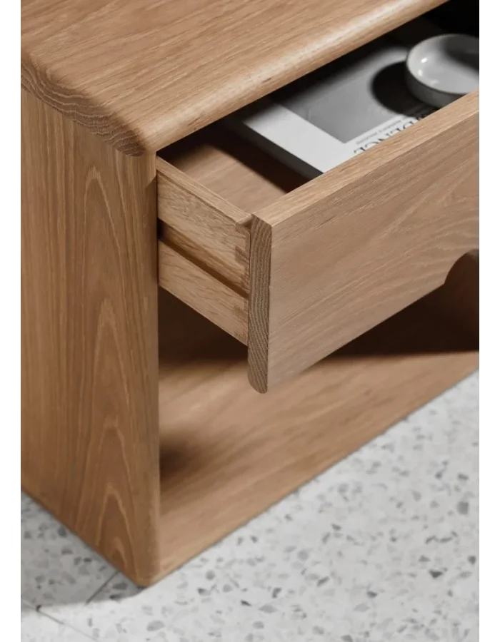 Tek Çekmeceli Geniş Raflı Ahşap Komodin 45x55x35 Cm
