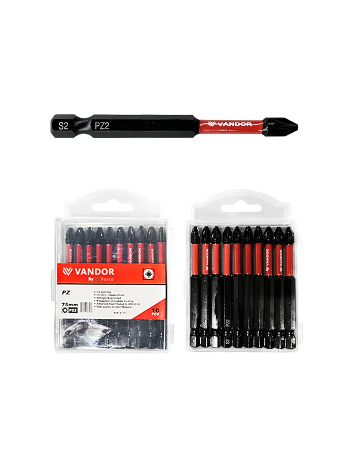 Vandor PZ2x75 Vidalama Ucu İmpact Bits Uç Kutu 10 Adet