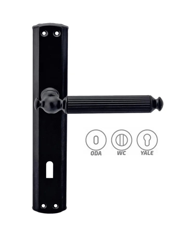 Hasır Siyah Aynalı Rustik Kapı Kolu Takım