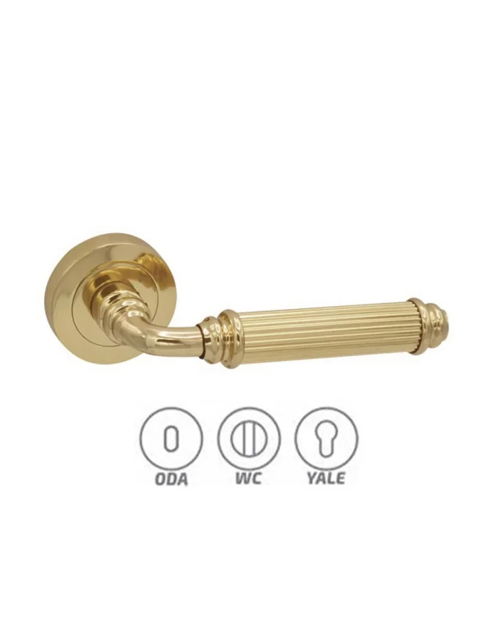 Falez Pirinç Altın Rozetli Kapı Kolu Gold