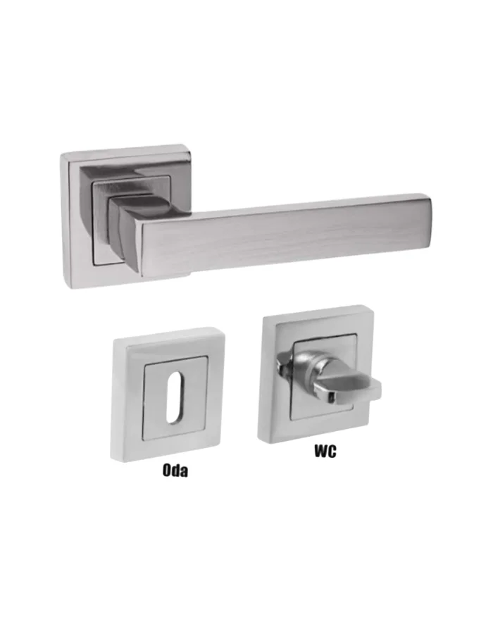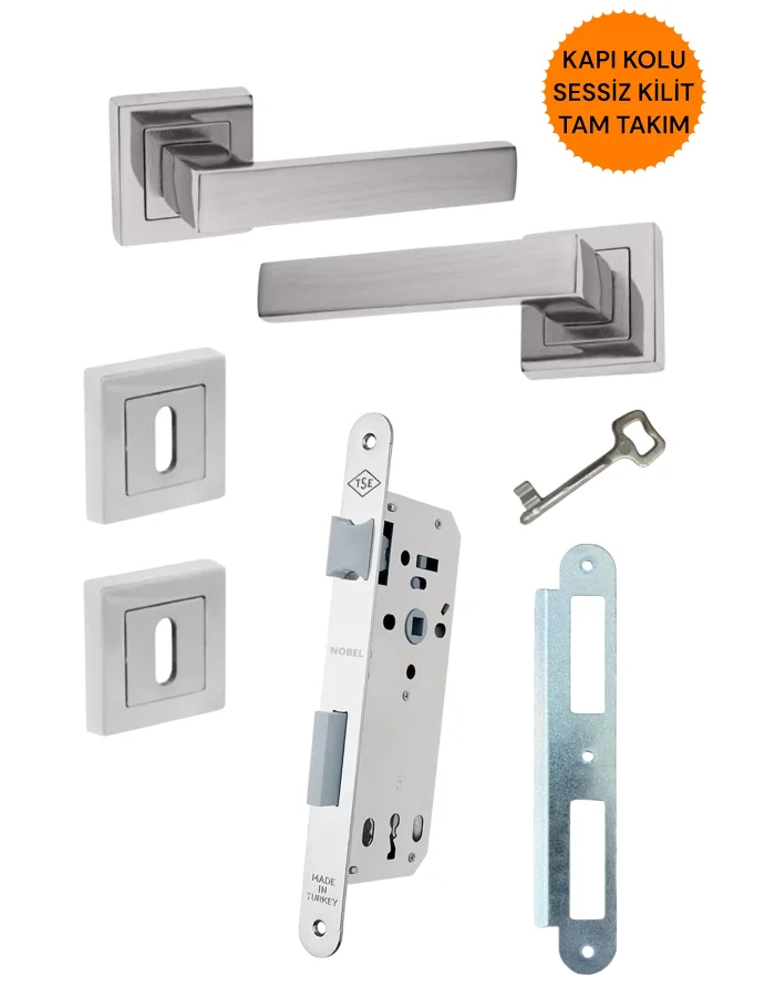 Max Avanti Rozetli Saten Kapı Kolu + Sessiz Kilit 40mm 2'li Set Oda