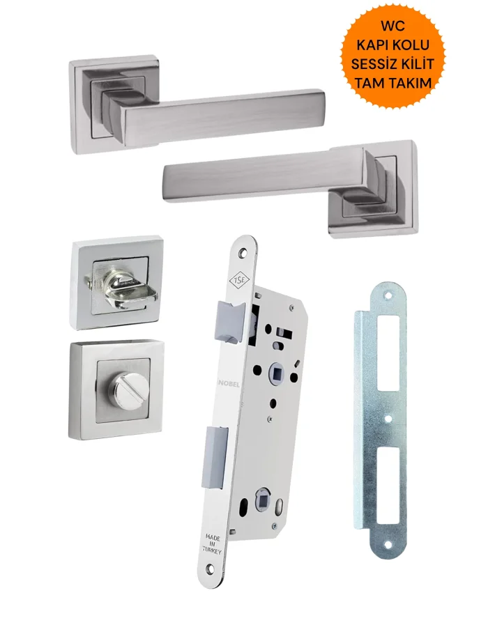 Max Avanti Rozetli Saten Kapı Kolu + Sessiz Kilit 40mm 2'li Set WC