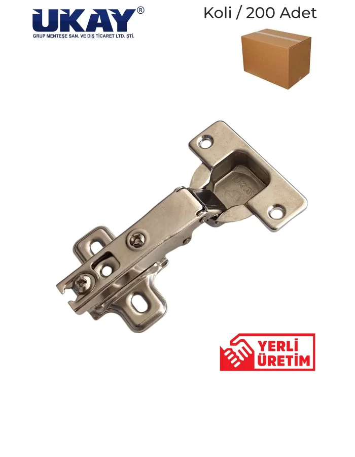 Ukay Düz Menteşe Dolap Kapak Menteşesi Taban Dahil Koli 200 Adet