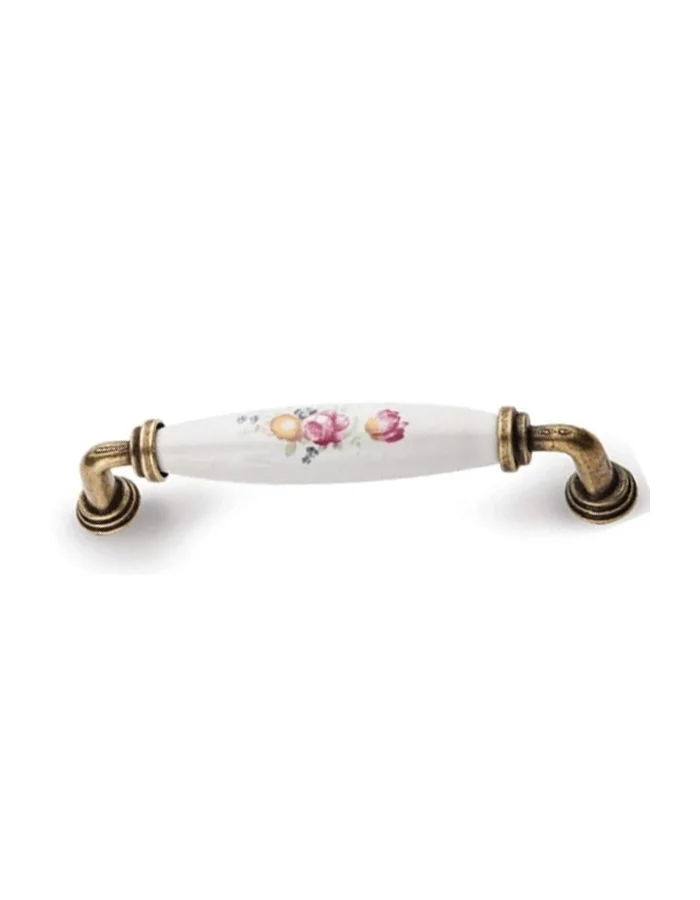 128 mm Gül Porselen Antik Bakır Kulp Mobilya Kulpu