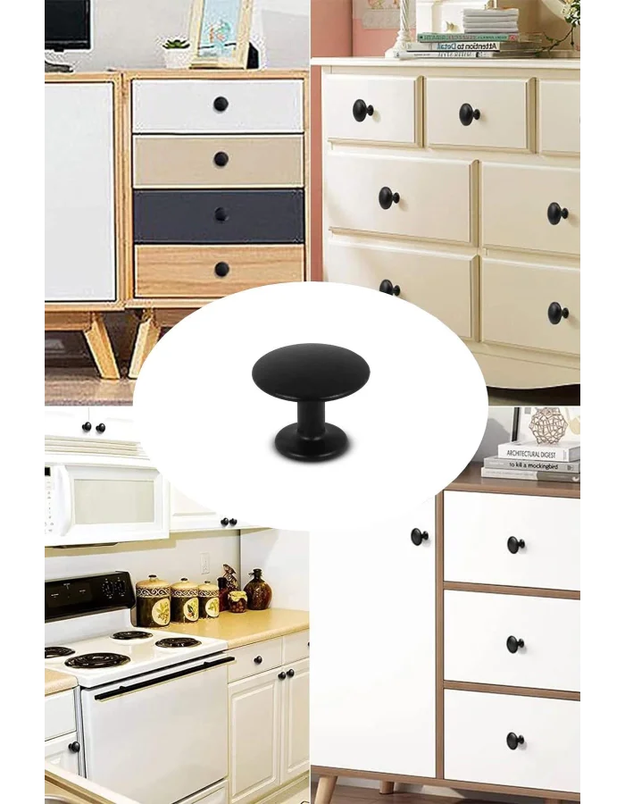 Nobel Mat Siyah Mantar Düğme Kulp Mobilya Dolap Kapak Çekmece Kulpu