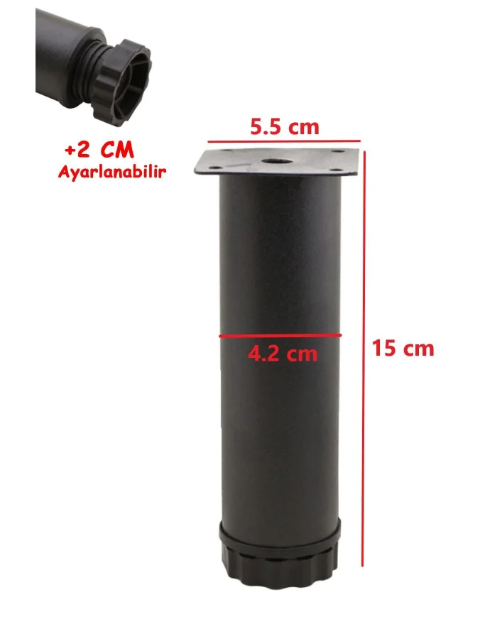 15 Cm Mat Siyah Metal Mobilya Kanepe Baza Koltuk Metal Destek Ayağı Ayarlanabilir Krom Ayak 42 Mm
