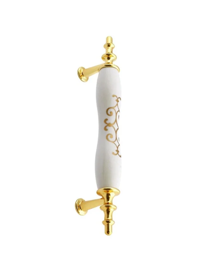 128 mm Altın Beyaz Polimer Kulp Çekmece Dolap Mobilya Kulpu Gold Yaldız Desenli