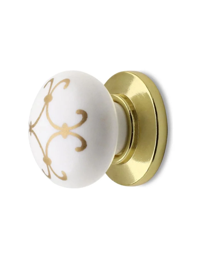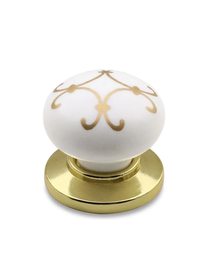 Tek Vidalı Altın Beyaz Polimer Kulp Çekmece Dolap Mobilya Kulpu Gold Yaldız Desenli