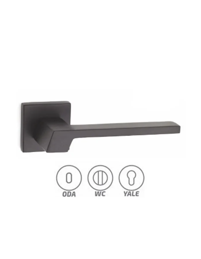 Sıla Zamak Mat Siyah Rozetli Kapı Kolu Takım