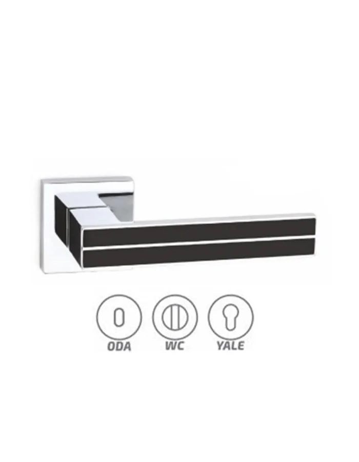 Yelken Zamak Krom Siyah Rozetli Kapı Kolu Takım