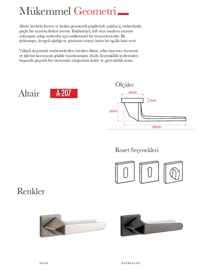 Ala Altair Saten Rozetli Kapı Kolu Takım