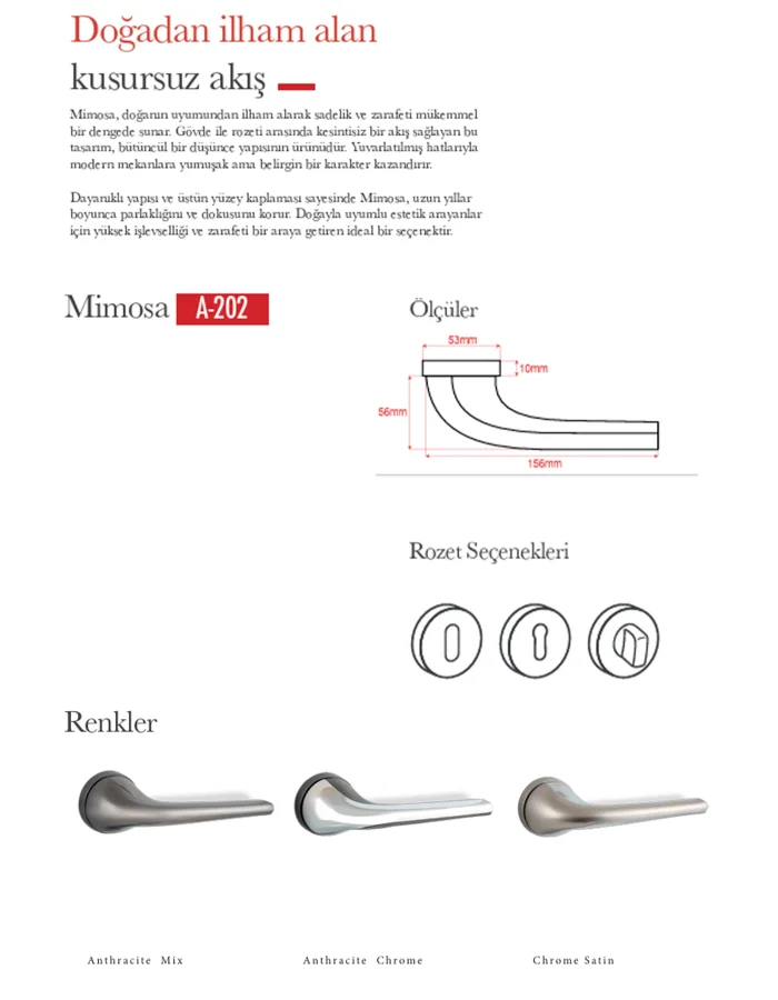 Ala Mimosa Antrasit Krom Rozetli Kapı Kolu Takım