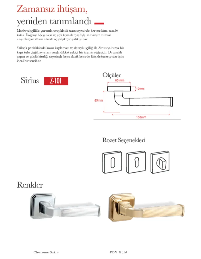 Ala Sirius Krom Saten Rozetli Kapı Kolu Takım