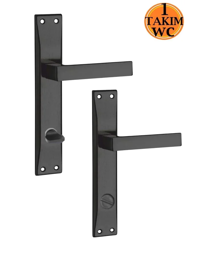 Firuze Siyah Aynalı WC Kapı Kolu Takım