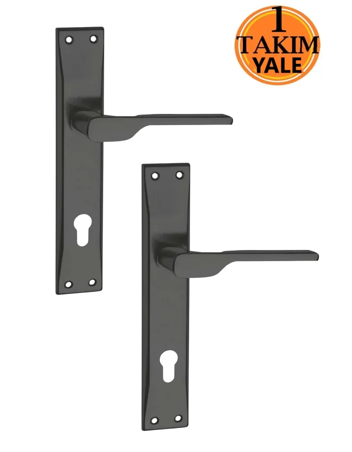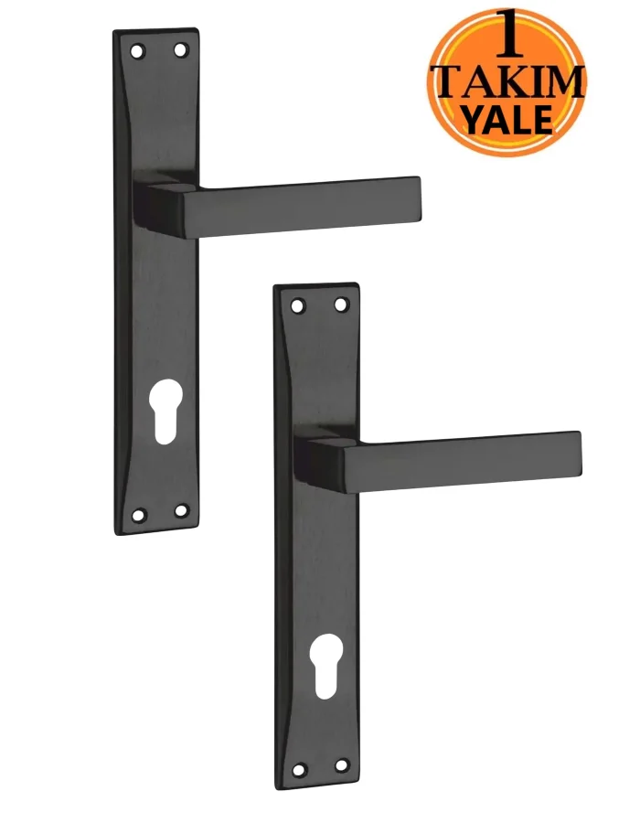 Firuze Siyah Aynalı Yale Silindirli Kapı Kolu Takım