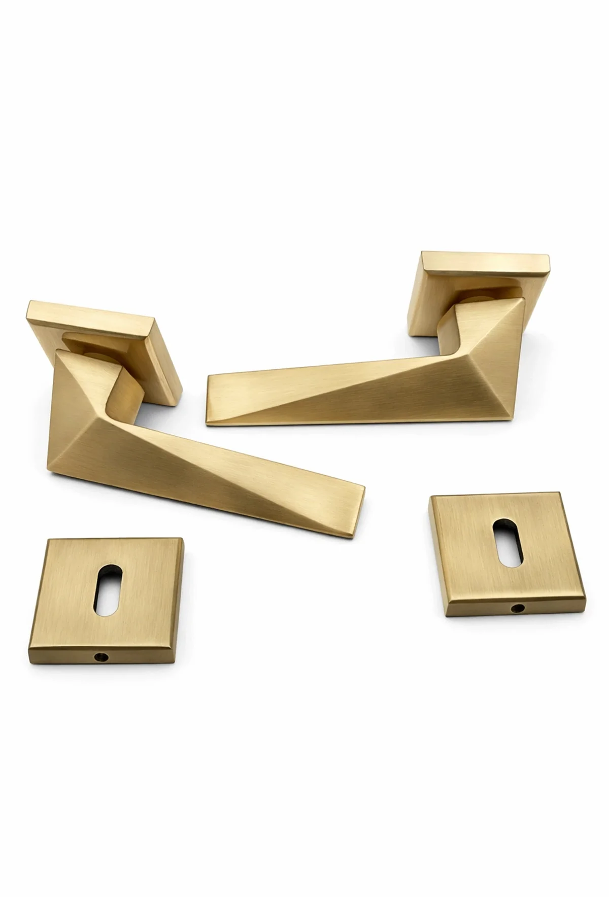 Zamak malzemeden estetik olarak üretilmiş, premium rozetli kapı kolu takımı, gramaj olarak ağır ve ele oturan bir yapısı vardır.