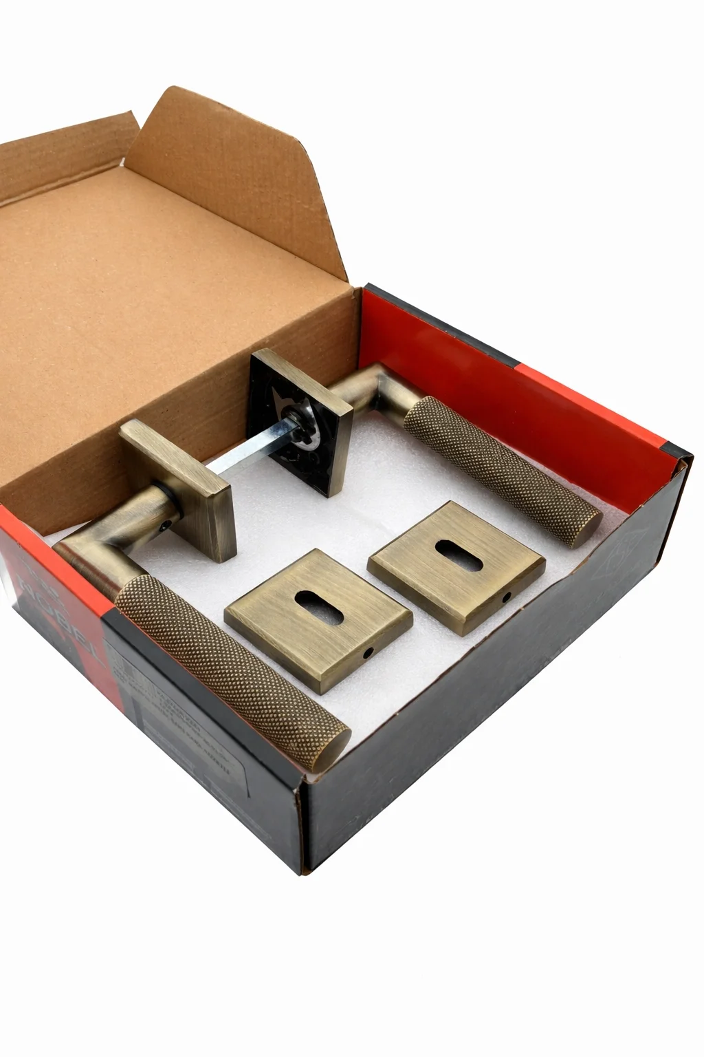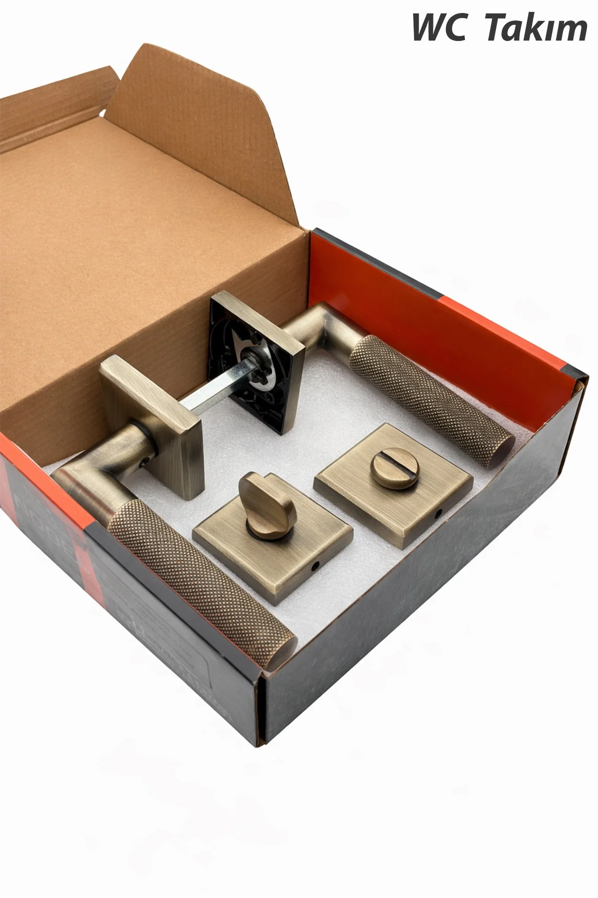 Zamak malzemeden estetik olarak üretilmiş, premium rozetli kapı kolu takımı, gramaj olarak ağır ve ele oturan bir yapısı vardır.