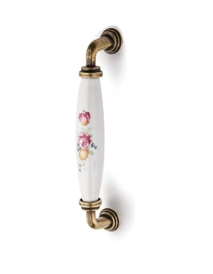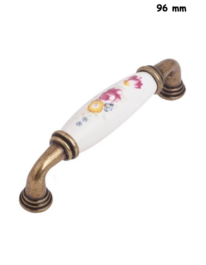 96 mm Gül Porselen Antik Bakır Kulp Mobilya Kulpu