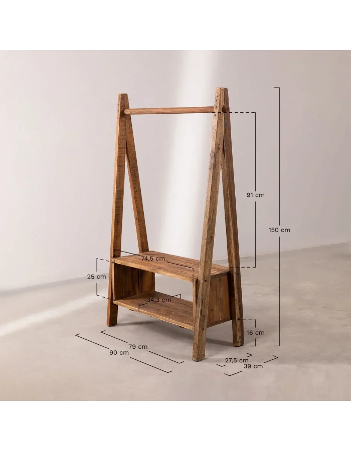 Ahşap Koyu Ceviz Model Basic Askılık, Portmanto 90x150x40 Cm