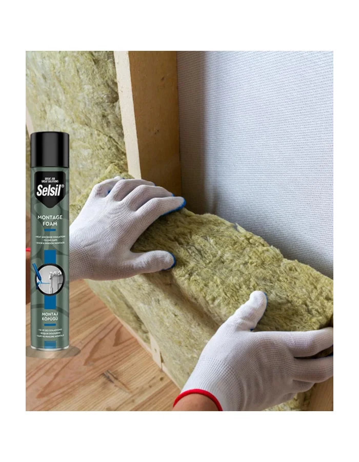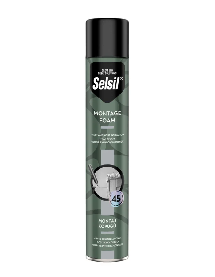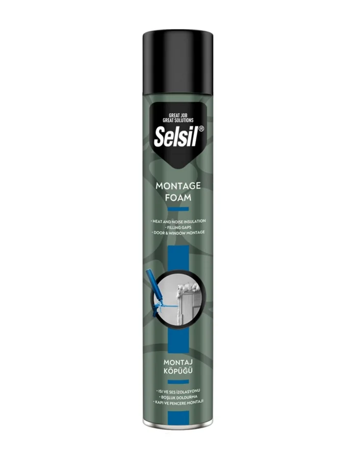 Selsil Montaj Köpüğü 600 ML 750 Gr, poliüretan bazlı havanın nemiyle sertleşen tek komponentli bir dolgu, yalıtım malzemedir.