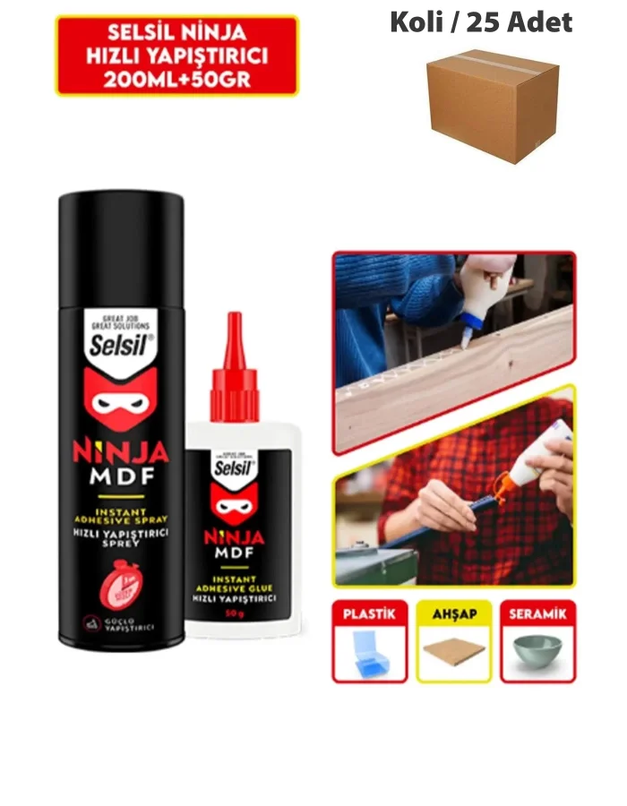 Selsil Ninja Mdf Hızlı Yapıştırıcı 200 Ml + 50 Gr Koli 25 Adet