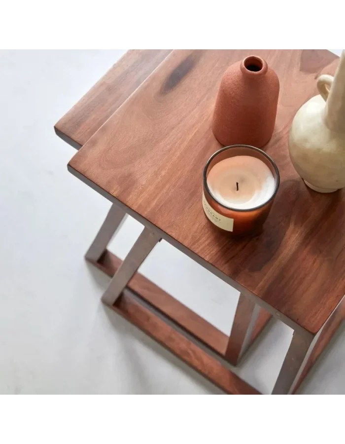 Lou Açık Ceviz Renk Basic Model Masif Ahşap Zigon Sehpa 2'li 40x50x40 Cm