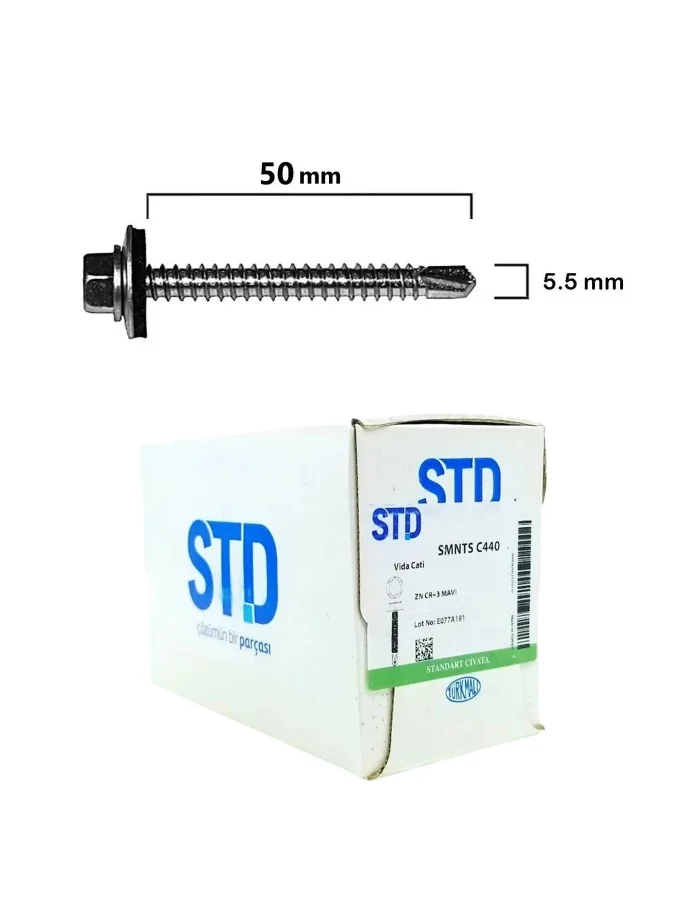 STD Trapez Çatı Vidası Pullu 5.5x50 Paket 200 Adet