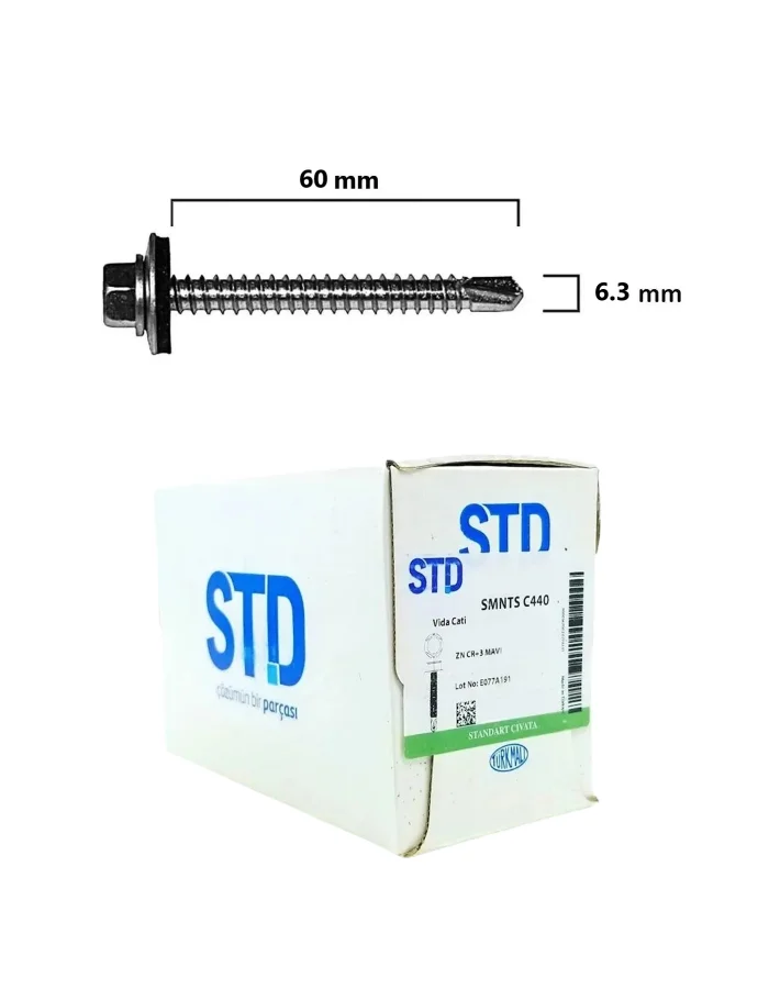 STD Trapez Çatı Vidası Pullu 6.3x60 Paket 150 Adet