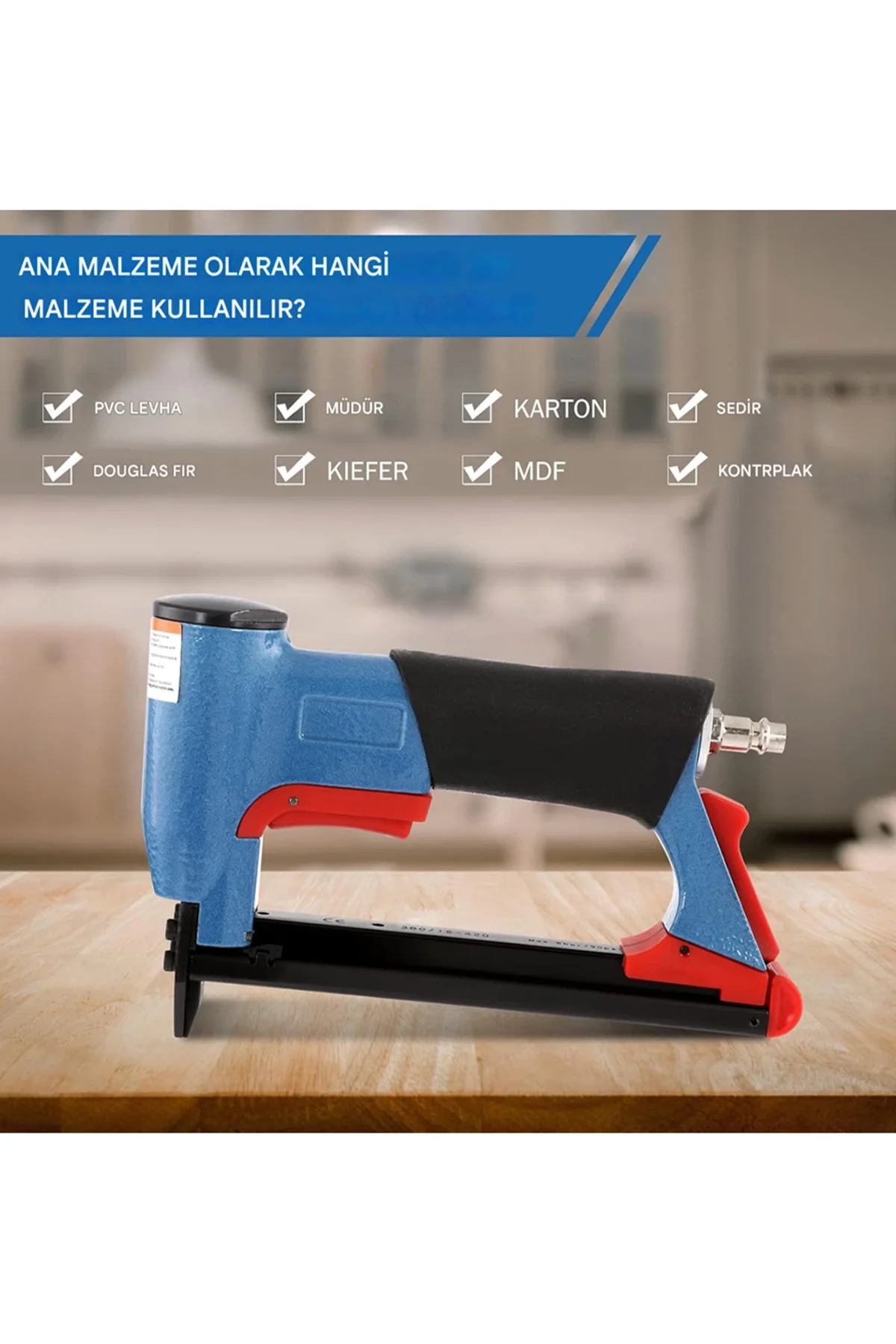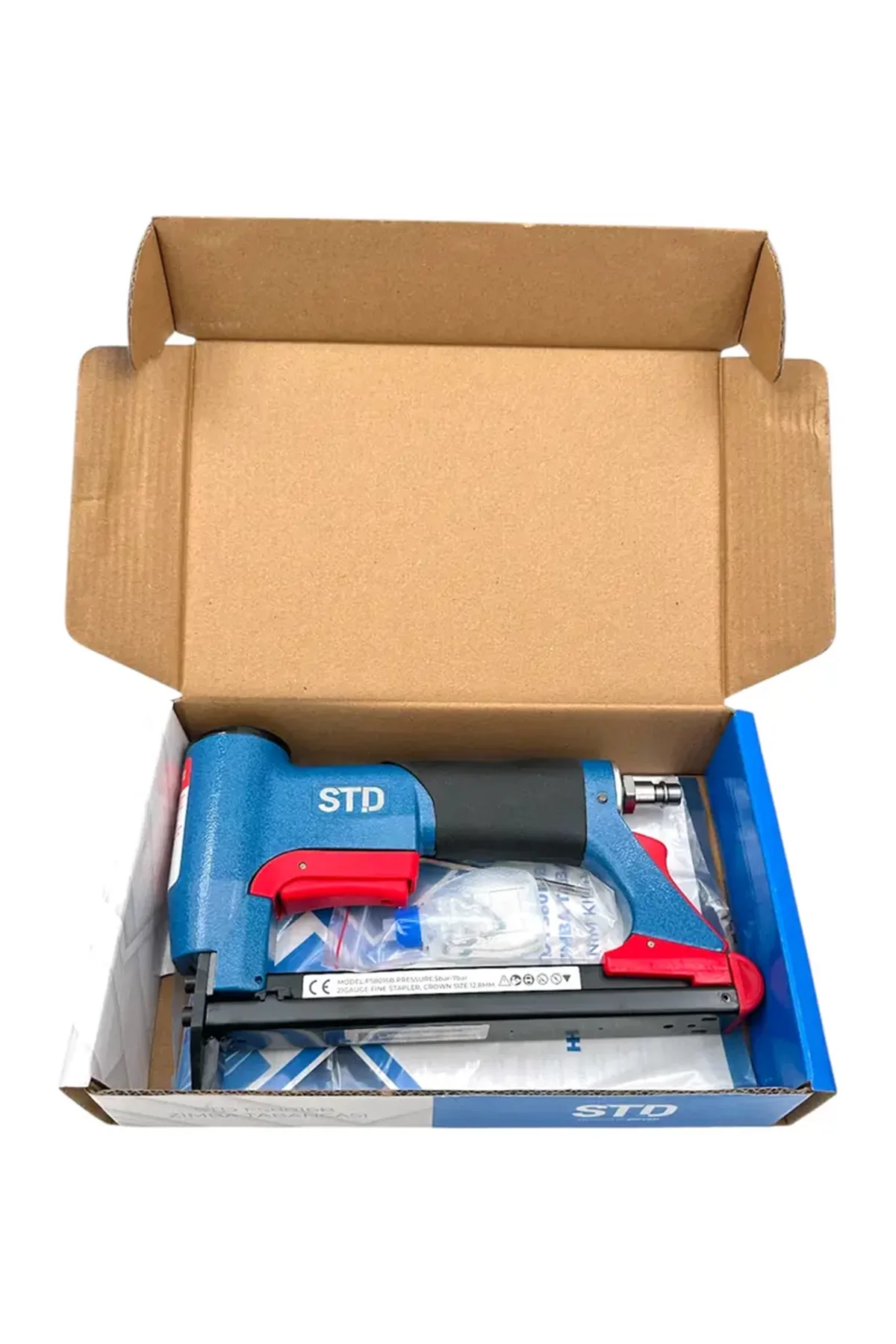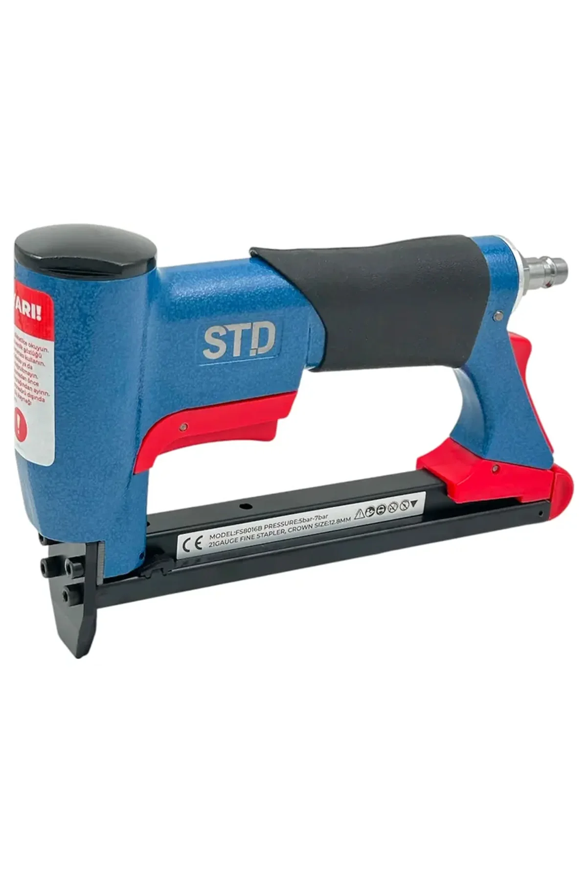 STD FS8016B Havalı Zımba Tabancası, döşemecilikten marangozluğa, fuar standlarından elektrik tesisat işlerine kadar pek çok alanda güvenle kullanılabilecek profesyonel bir çözümdür. Hafif gövdesi, yüksek kapasiteli haznesi ve ayarlanabilir hava basıncıyla işinizi kolaylaştırır, zaman kazandırır.