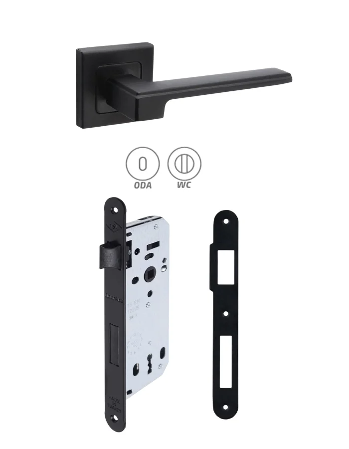Max Panama Siyah Rozetli Kapı Kolu + Siyah Kilit 40mm 2'li Set
